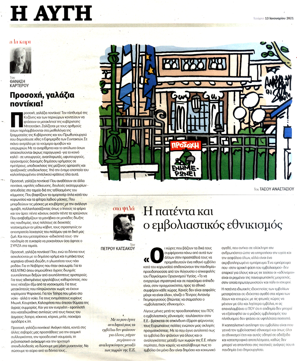 Η ΑΥΓΗ - 13 Ιανουαρίου 2021