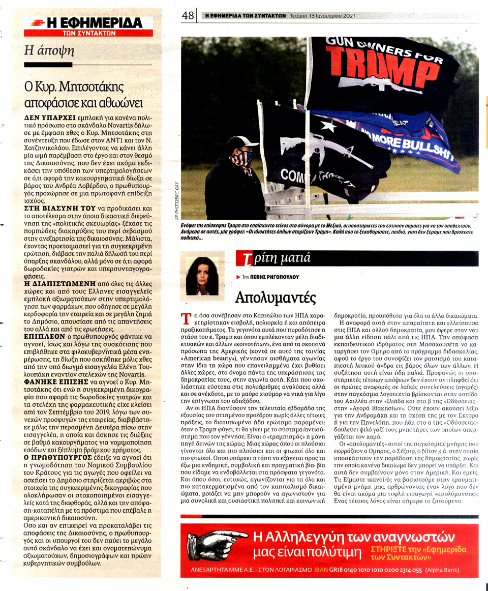 Η ΕΦΗΜΕΡΙΔΑ ΤΩΝ ΣΥΝΤΑΚΤΩΝ - 13 Ιανουαρίου 2021