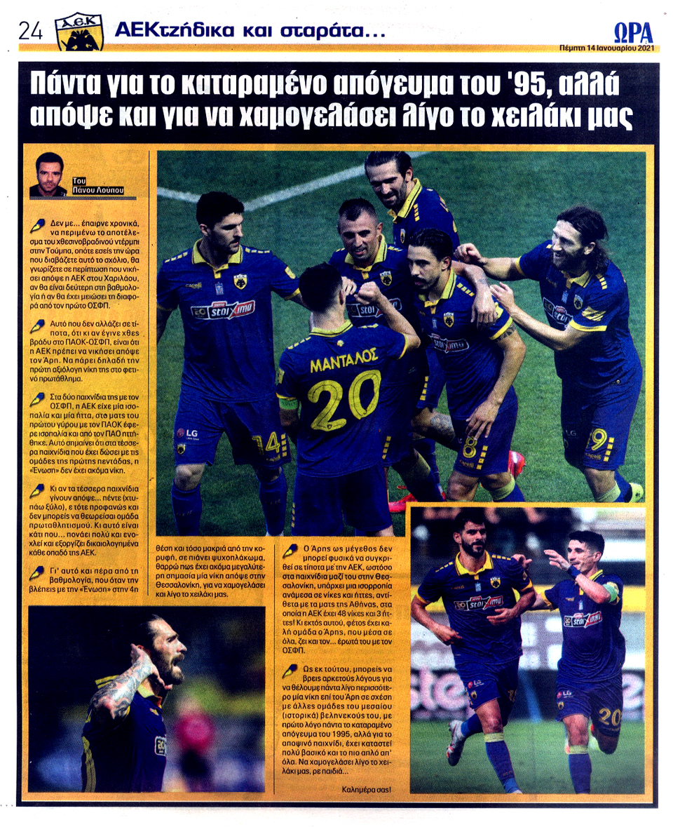 ΑΘΛΗΤΙΚΗ ΩΡΑ ΤΩΝ ΣΠΟΡ - 14 Ιανουαρίου 2021