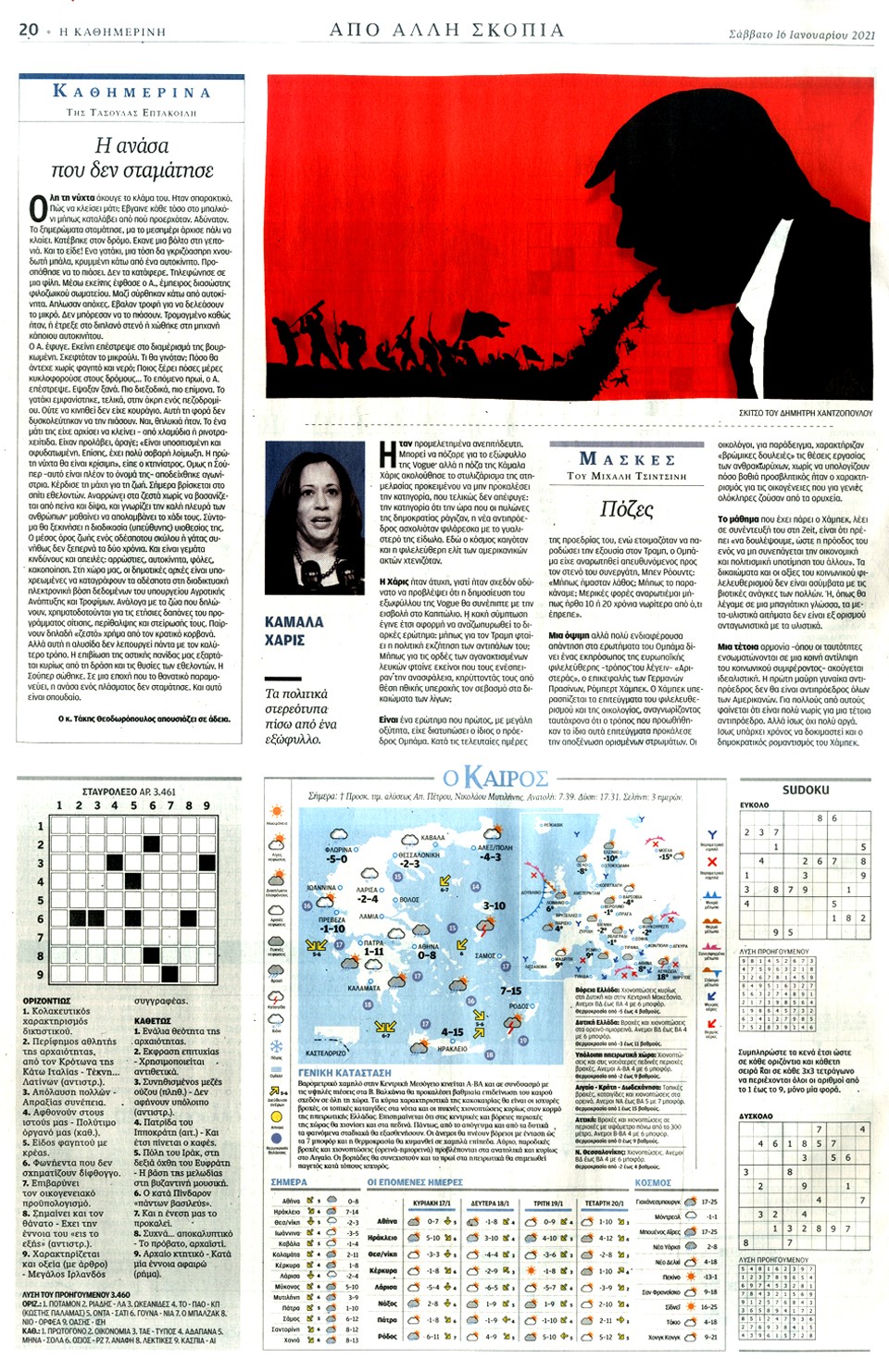ΚΑΘΗΜΕΡΙΝΗ - 16 Ιανουαρίου 2021