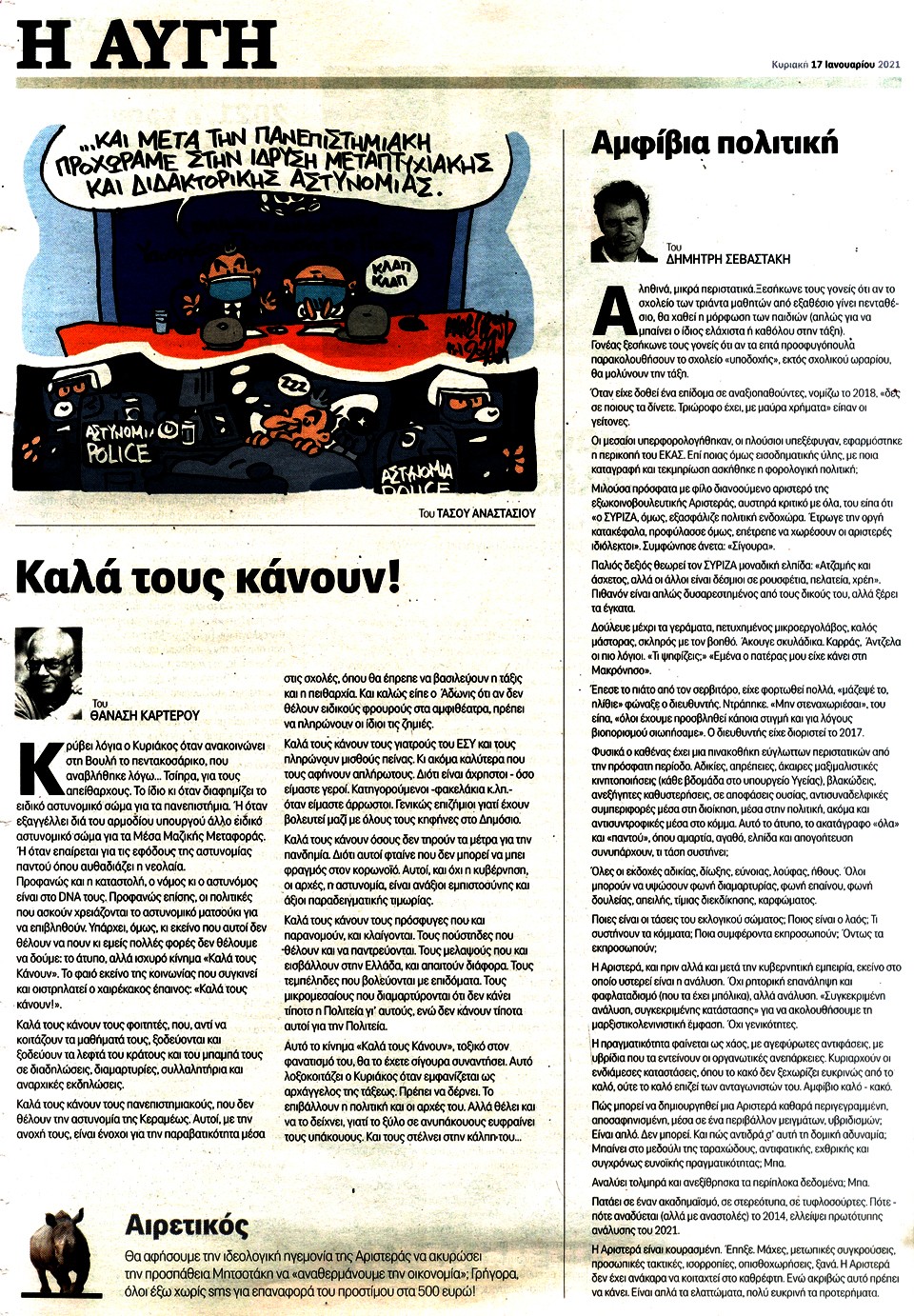 Η ΑΥΓΗ ΤΗΣ ΚΥΡΙΑΚΗΣ - 17 Ιανουαρίου 2021