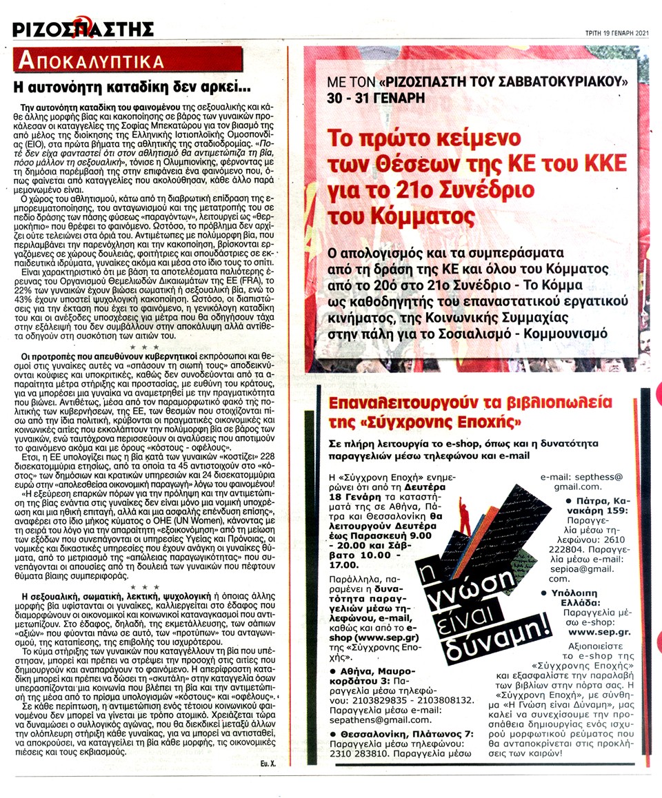 ΡΙΖΟΣΠΑΣΤΗΣ - 19 Ιανουαρίου 2021