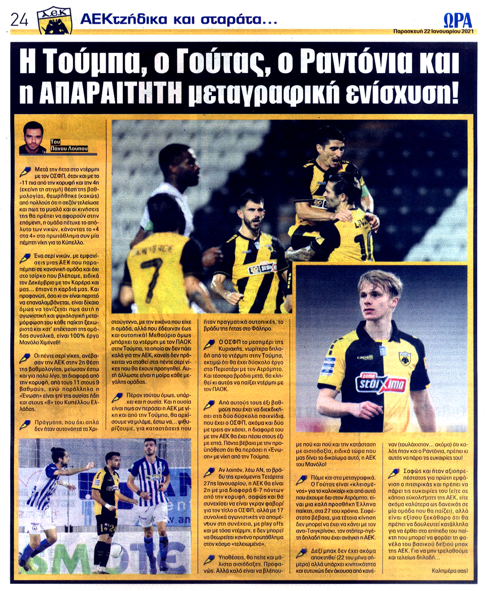 ΑΘΛΗΤΙΚΗ ΩΡΑ ΤΩΝ ΣΠΟΡ - 22 Ιανουαρίου 2021