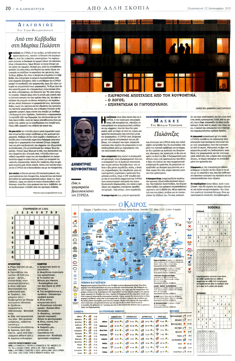ΚΑΘΗΜΕΡΙΝΗ - 22 Ιανουαρίου 2021
