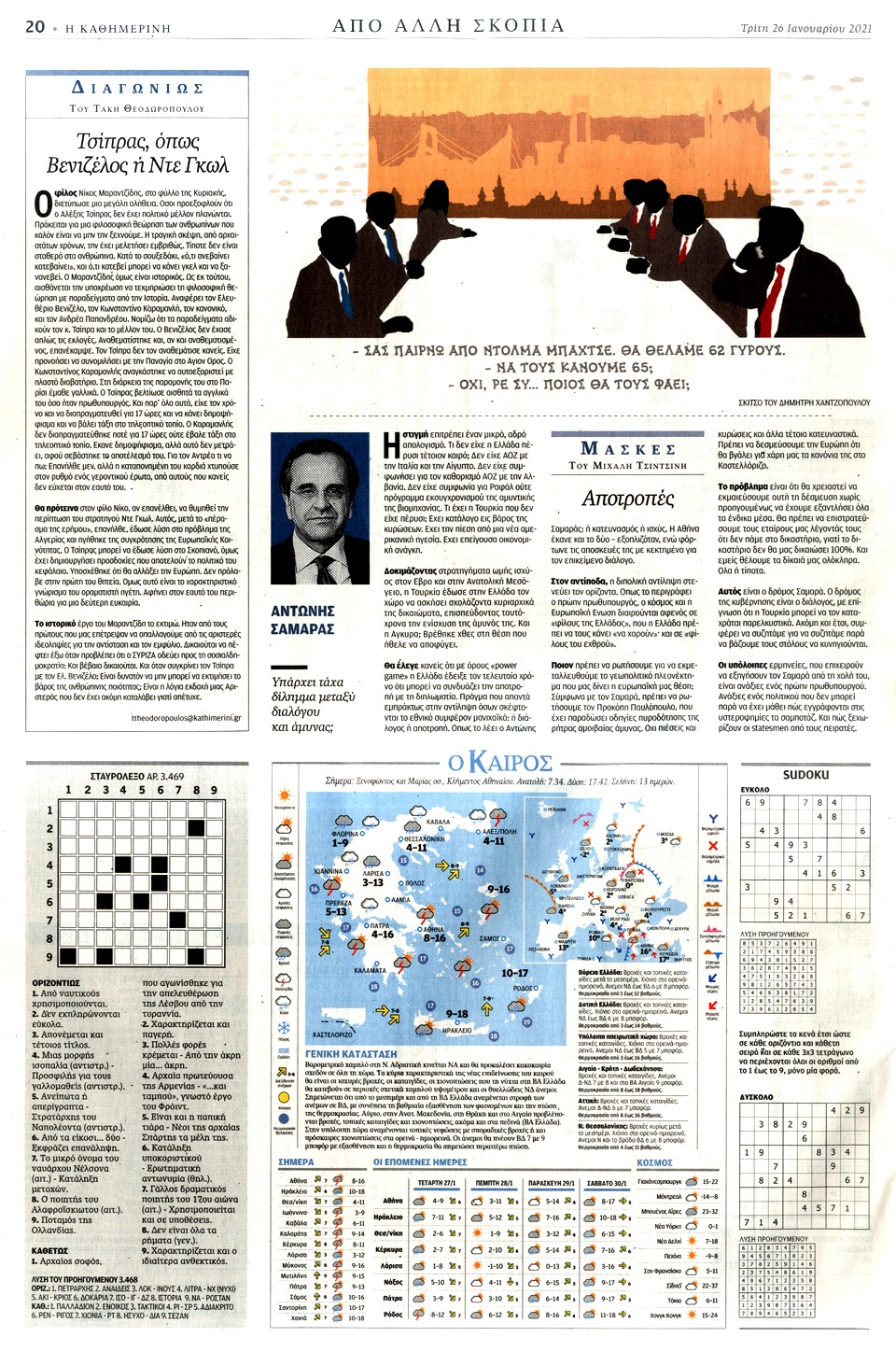 ΚΑΘΗΜΕΡΙΝΗ - 26 Ιανουαρίου 2021