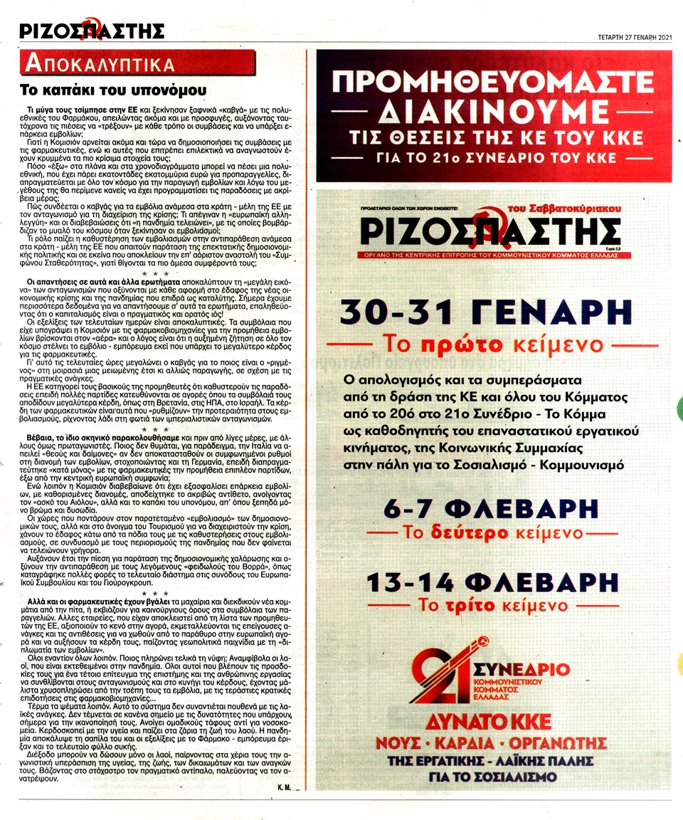 ΡΙΖΟΣΠΑΣΤΗΣ - 27 Ιανουαρίου 2021