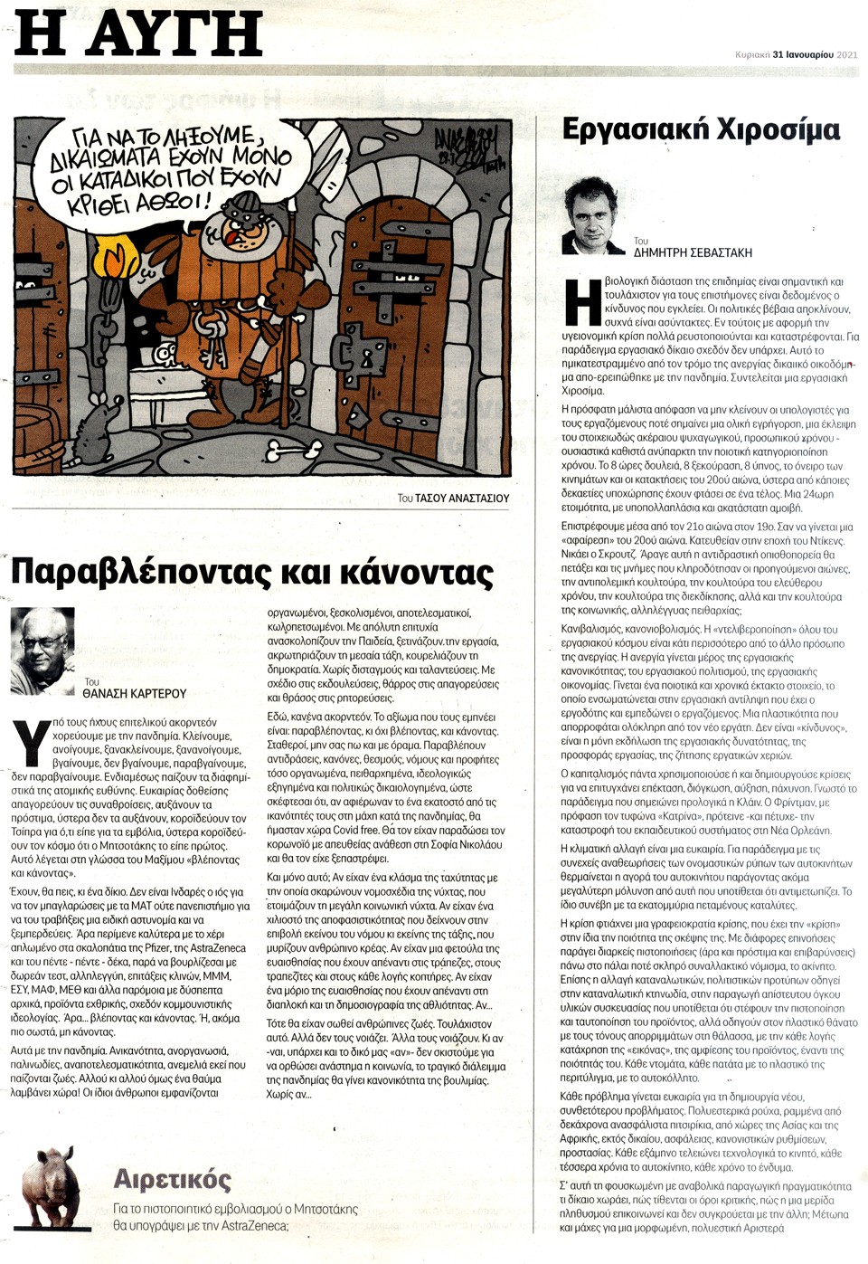 Η ΑΥΓΗ ΤΗΣ ΚΥΡΙΑΚΗΣ - 31 Ιανουαρίου 2021