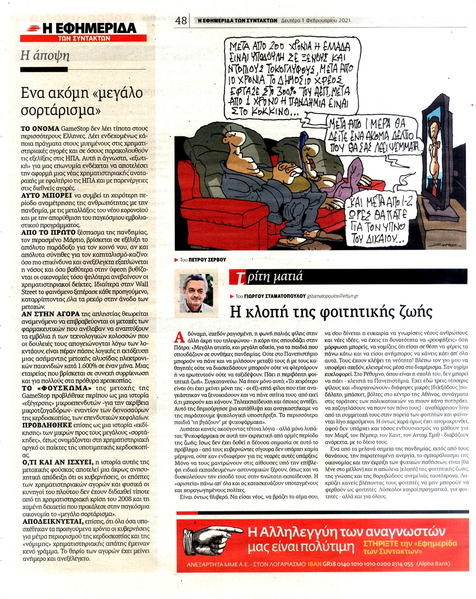 Η ΕΦΗΜΕΡΙΔΑ ΤΩΝ ΣΥΝΤΑΚΤΩΝ - 1 Φεβρουαρίου 2021