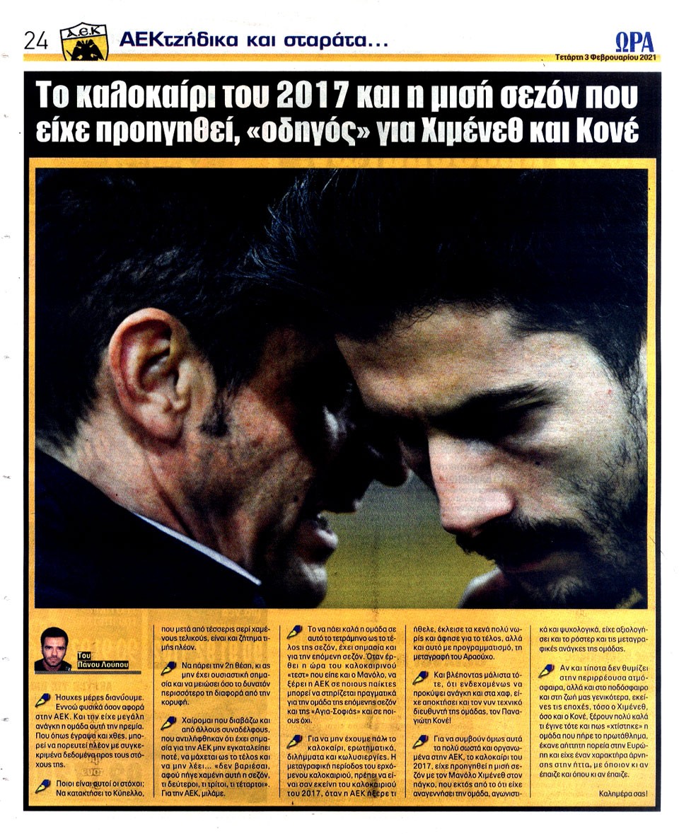 ΑΘΛΗΤΙΚΗ ΩΡΑ ΤΩΝ ΣΠΟΡ - 3 Φεβρουαρίου 2021