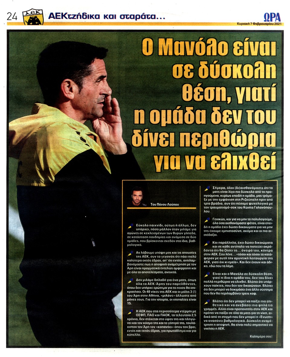 ΑΘΛΗΤΙΚΗ ΩΡΑ ΤΩΝ ΣΠΟΡ - 7 Φεβρουαρίου 2021