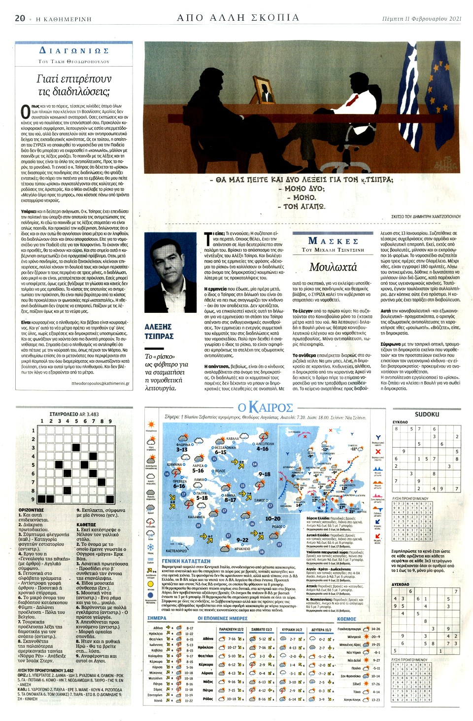 ΚΑΘΗΜΕΡΙΝΗ - 11 Φεβρουαρίου 2021