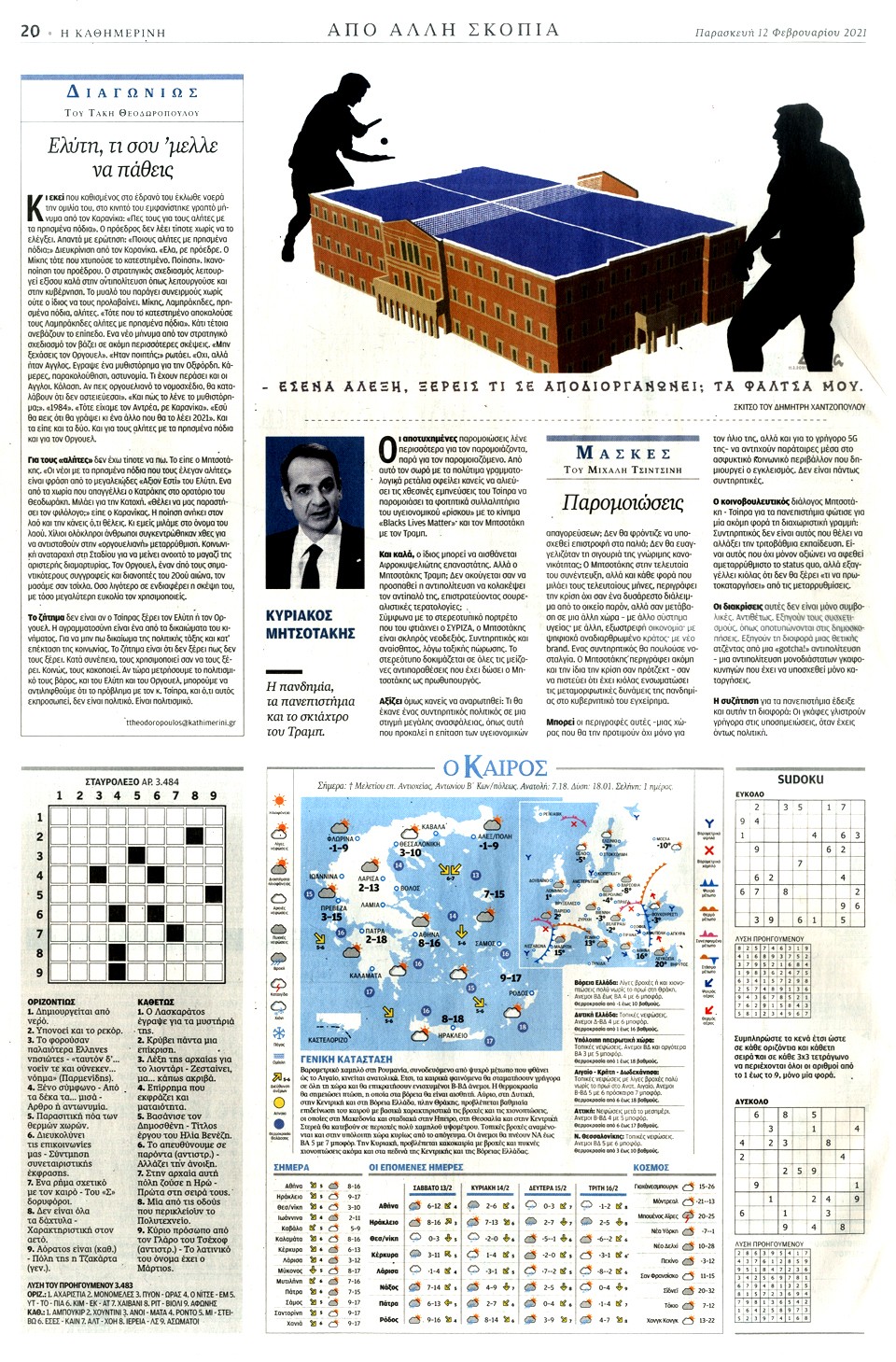 ΚΑΘΗΜΕΡΙΝΗ - 12 Φεβρουαρίου 2021