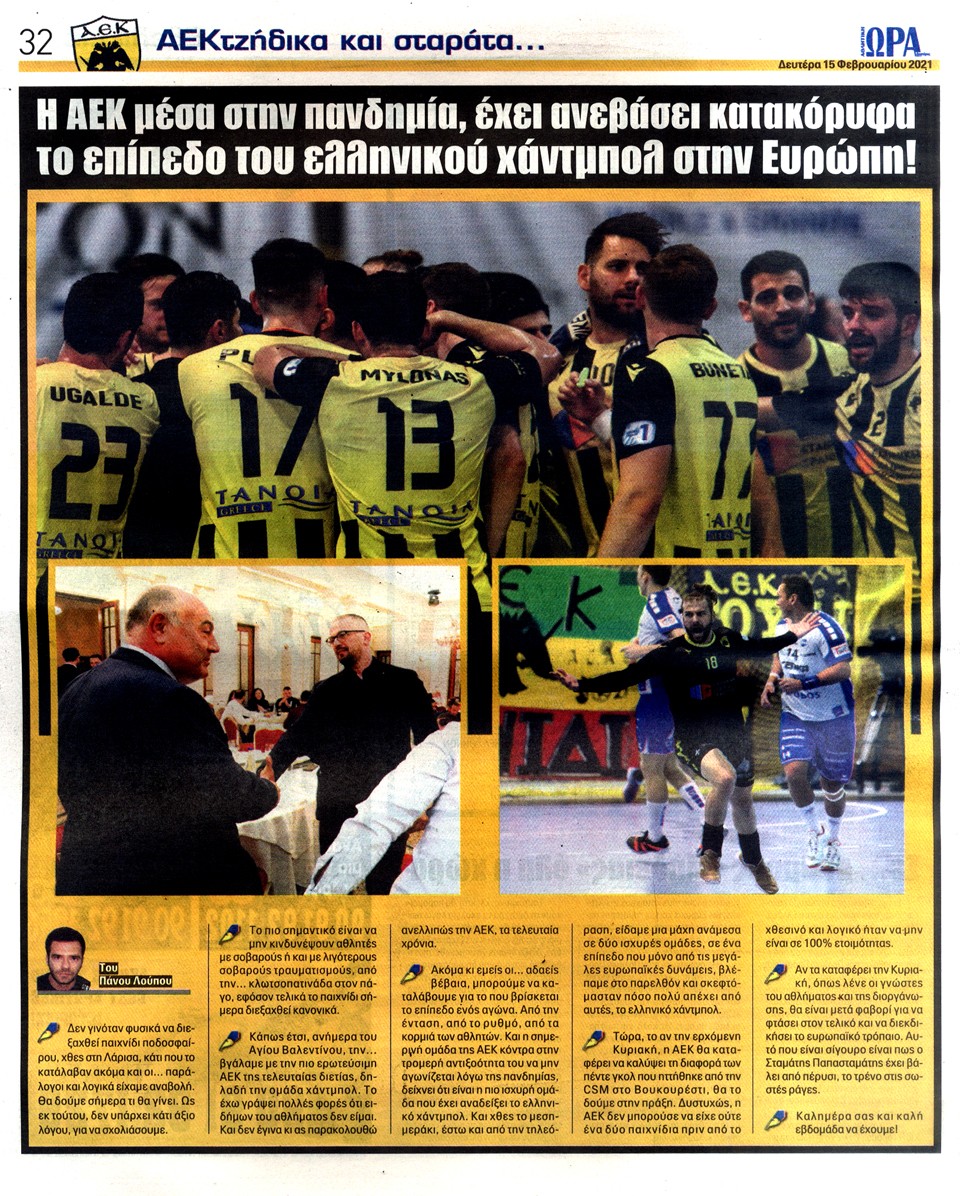 ΑΘΛΗΤΙΚΗ ΩΡΑ ΤΩΝ ΣΠΟΡ - 15 Φεβρουαρίου 2021