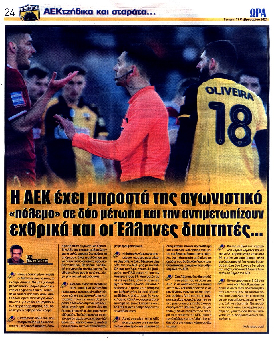 ΑΘΛΗΤΙΚΗ ΩΡΑ ΤΩΝ ΣΠΟΡ - 17 Φεβρουαρίου 2021