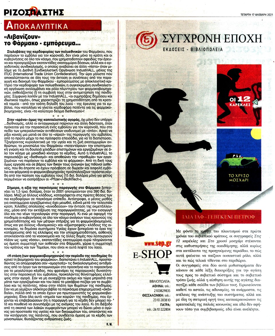 ΡΙΖΟΣΠΑΣΤΗΣ - 17 Φεβρουαρίου 2021