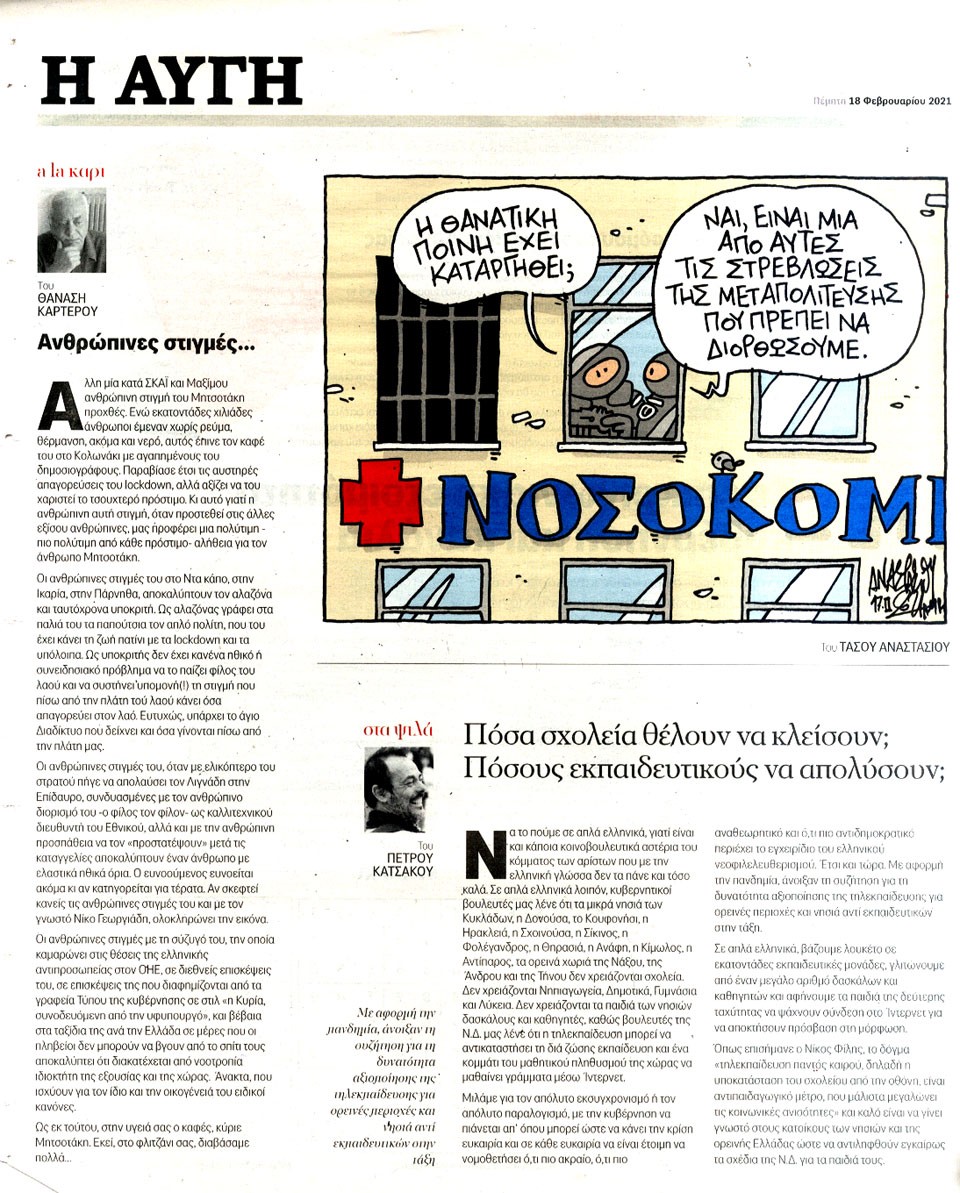Η ΑΥΓΗ - 18 Φεβρουαρίου 2021