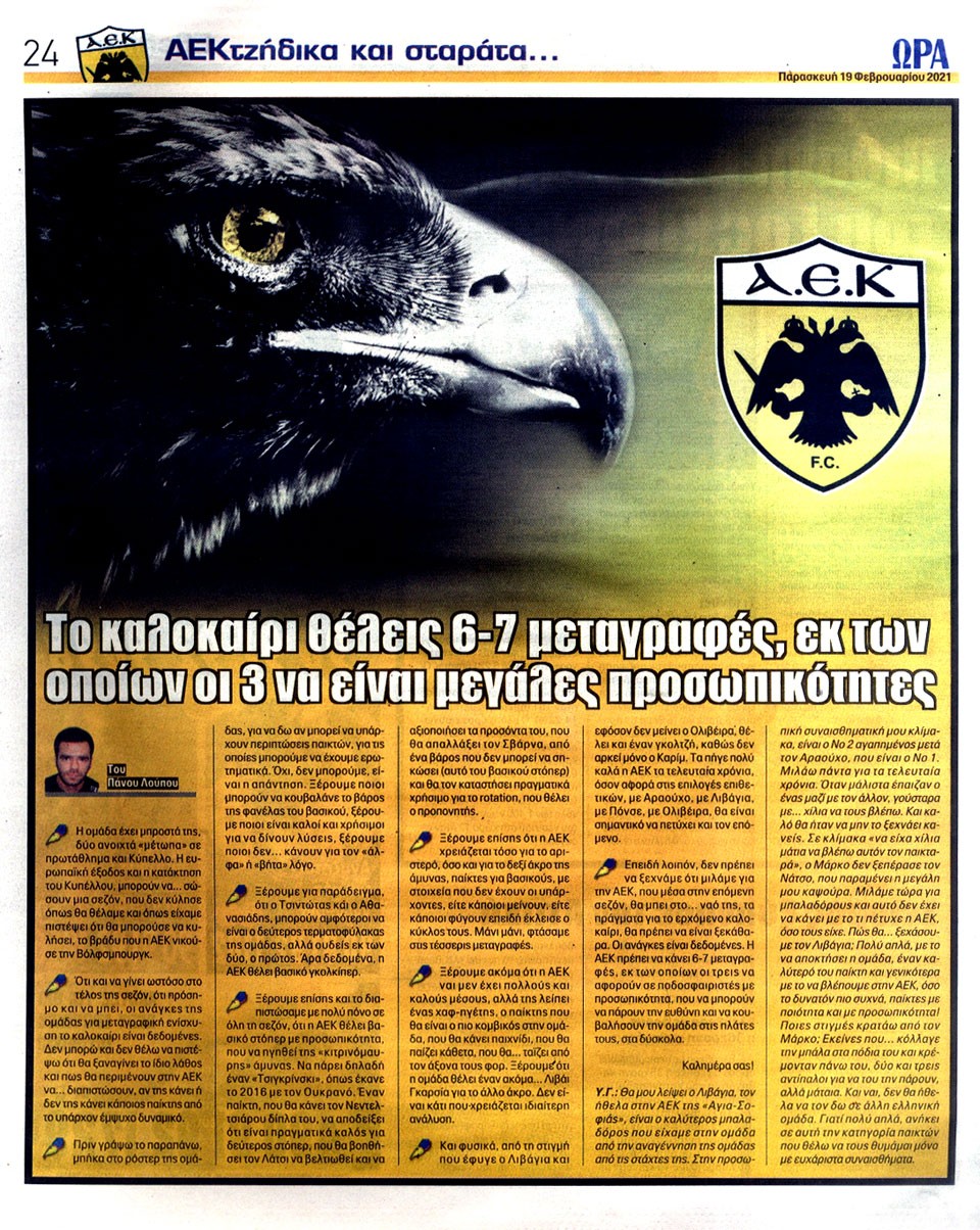ΑΘΛΗΤΙΚΗ ΩΡΑ ΤΩΝ ΣΠΟΡ - 19 Φεβρουαρίου 2021
