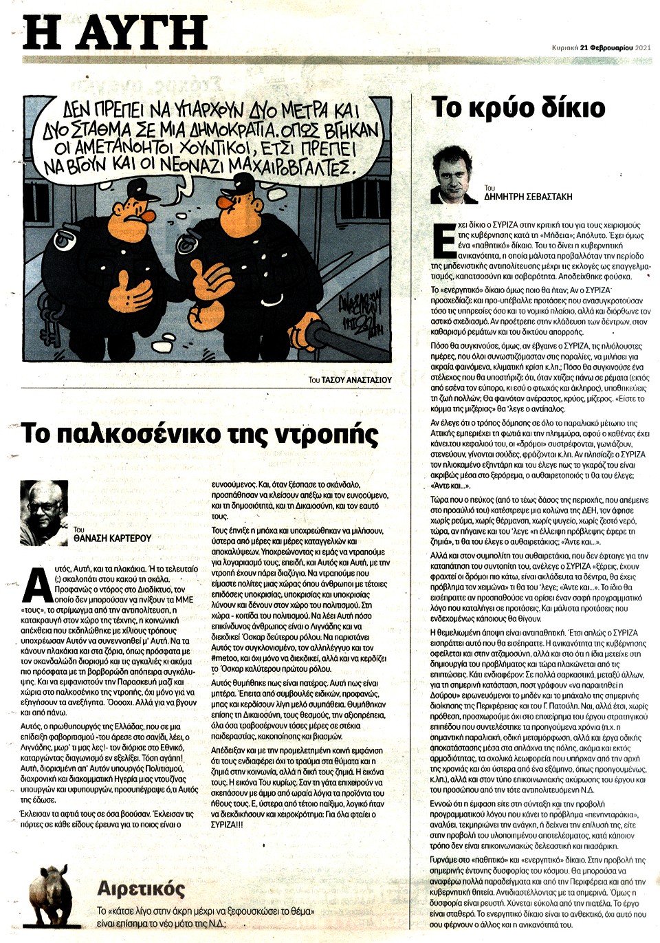 Η ΑΥΓΗ ΤΗΣ ΚΥΡΙΑΚΗΣ - 21 Φεβρουαρίου 2021