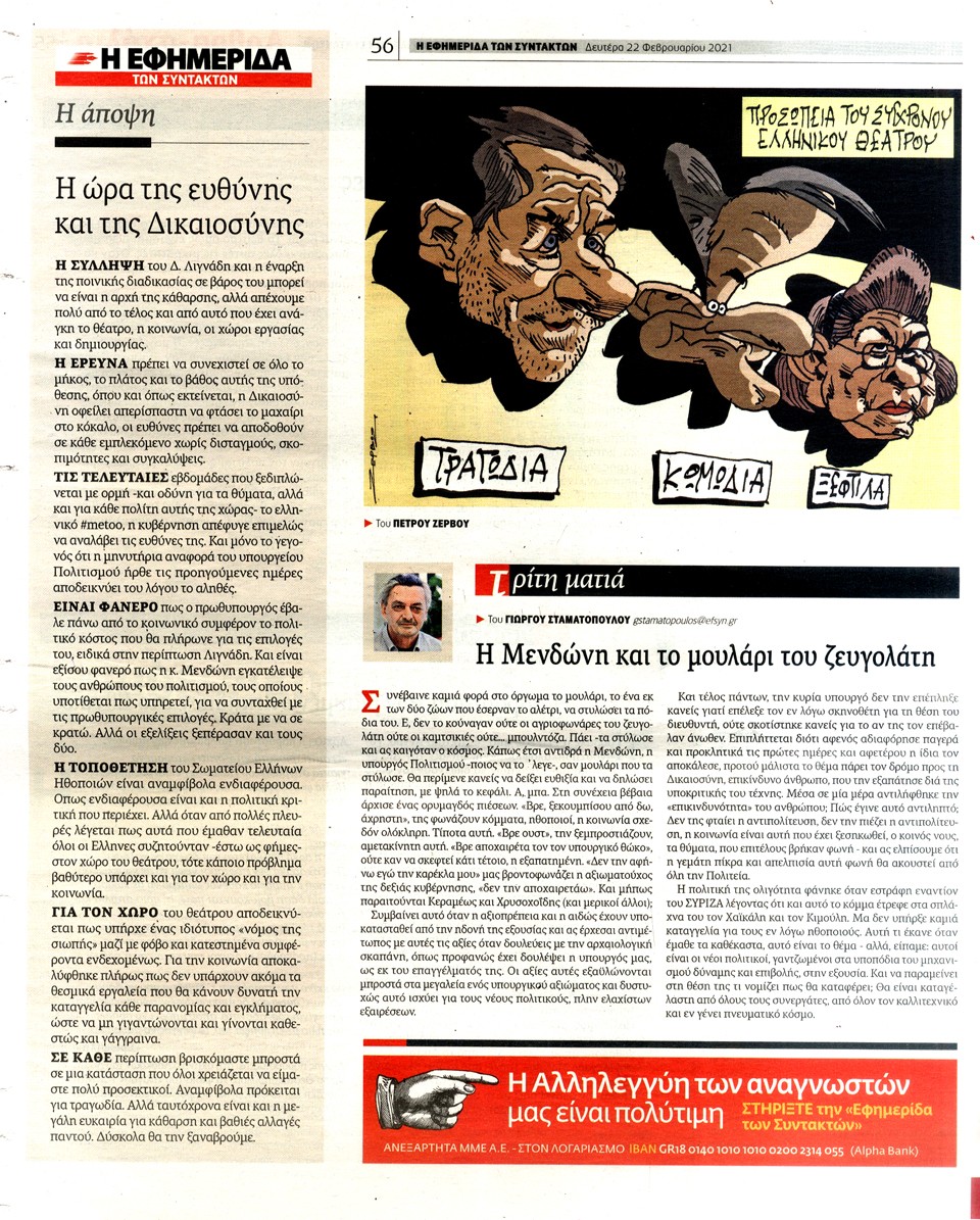 Η ΕΦΗΜΕΡΙΔΑ ΤΩΝ ΣΥΝΤΑΚΤΩΝ - 22 Φεβρουαρίου 2021