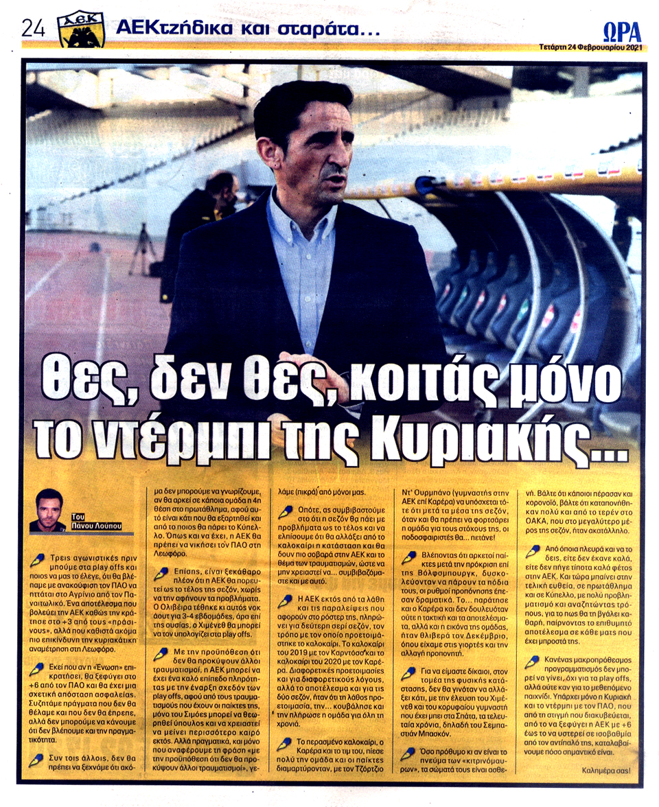 ΑΘΛΗΤΙΚΗ ΩΡΑ ΤΩΝ ΣΠΟΡ - 24 Φεβρουαρίου 2021