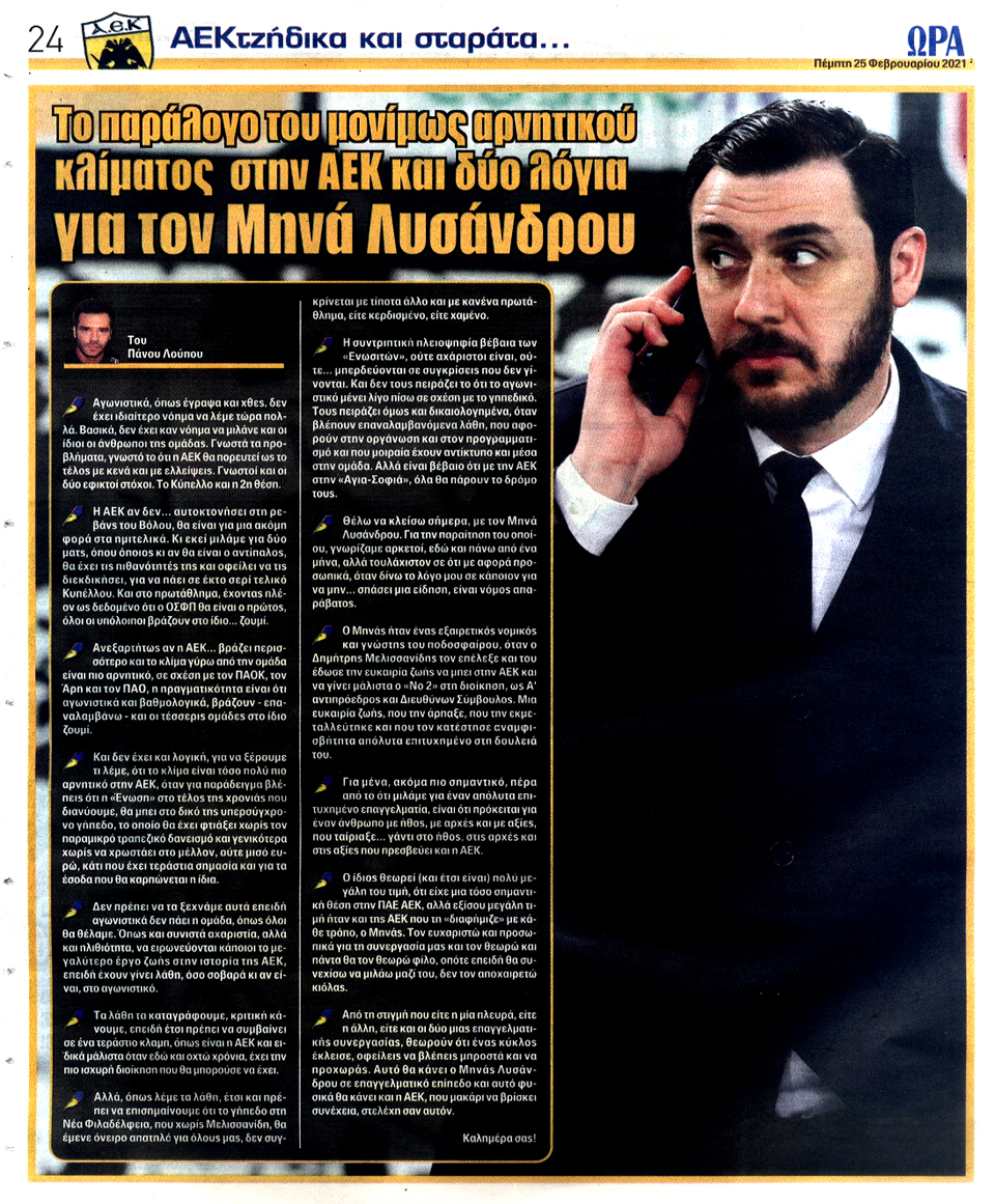ΑΘΛΗΤΙΚΗ ΩΡΑ ΤΩΝ ΣΠΟΡ - 25 Φεβρουαρίου 2021