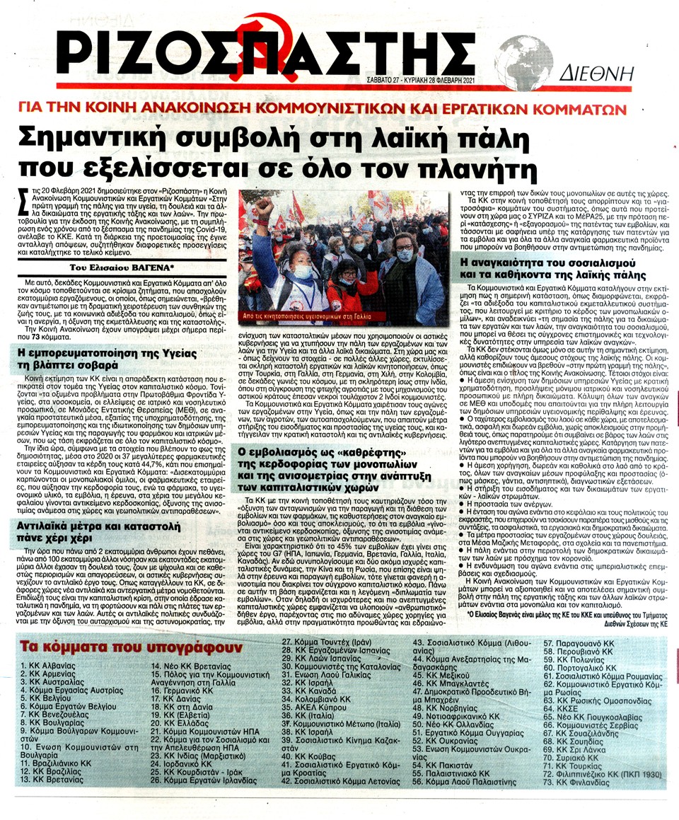 ΡΙΖΟΣΠΑΣΤΗΣ - 27 Φεβρουαρίου 2021