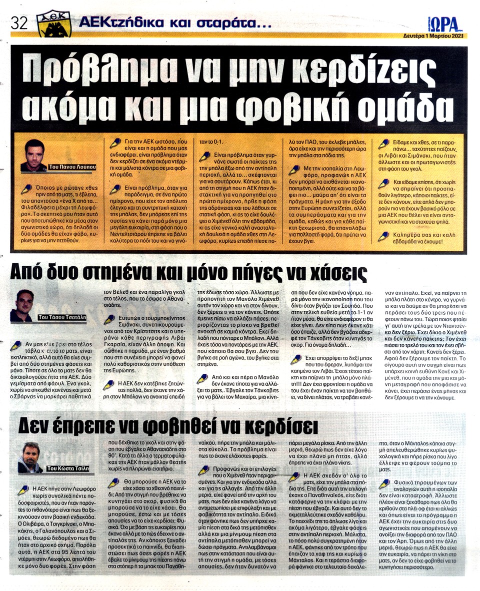 ΑΘΛΗΤΙΚΗ ΩΡΑ ΤΩΝ ΣΠΟΡ - 1 Μαρτίου 2021