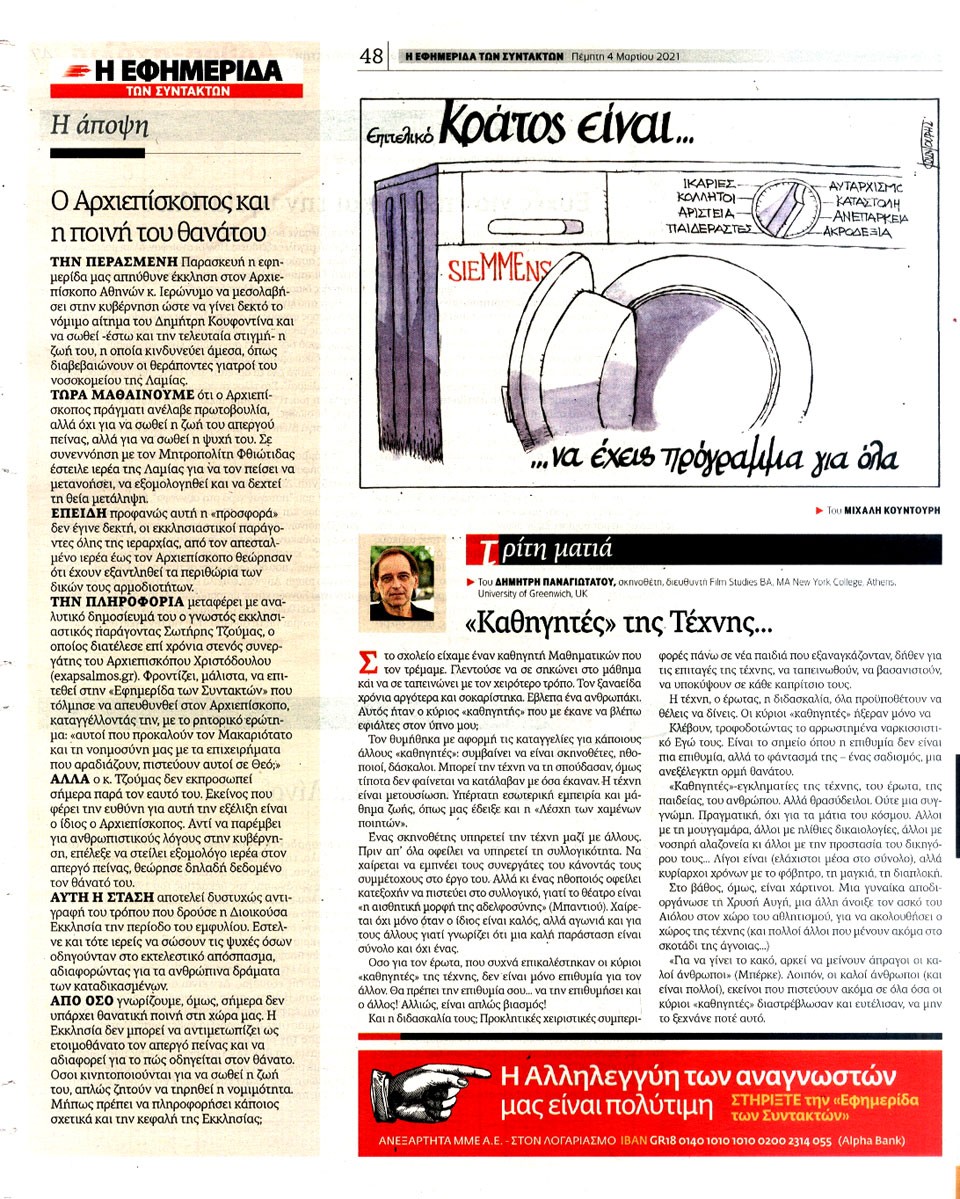 Η ΕΦΗΜΕΡΙΔΑ ΤΩΝ ΣΥΝΤΑΚΤΩΝ - 4 Μαρτίου 2021