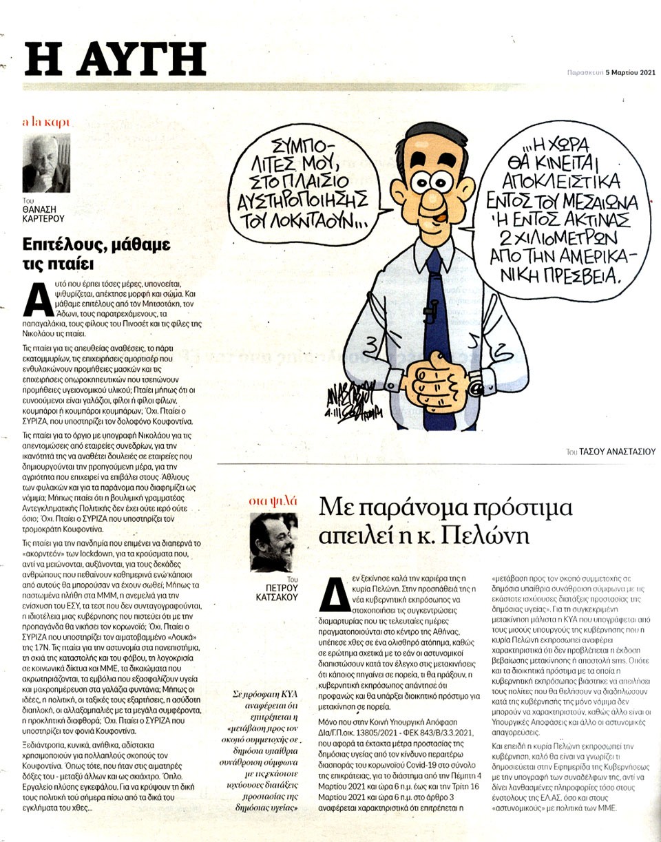 Η ΑΥΓΗ - 5 Μαρτίου 2021