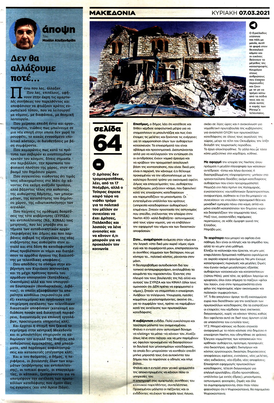 ΜΑΚΕΔΟΝΙΑ ΤΗΣ ΚΥΡΙΑΚΗΣ - 7 Μαρτίου 2021