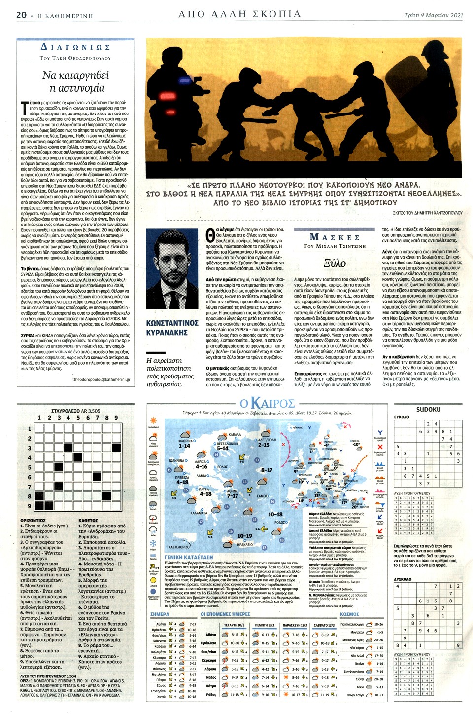 ΚΑΘΗΜΕΡΙΝΗ - 9 Μαρτίου 2021