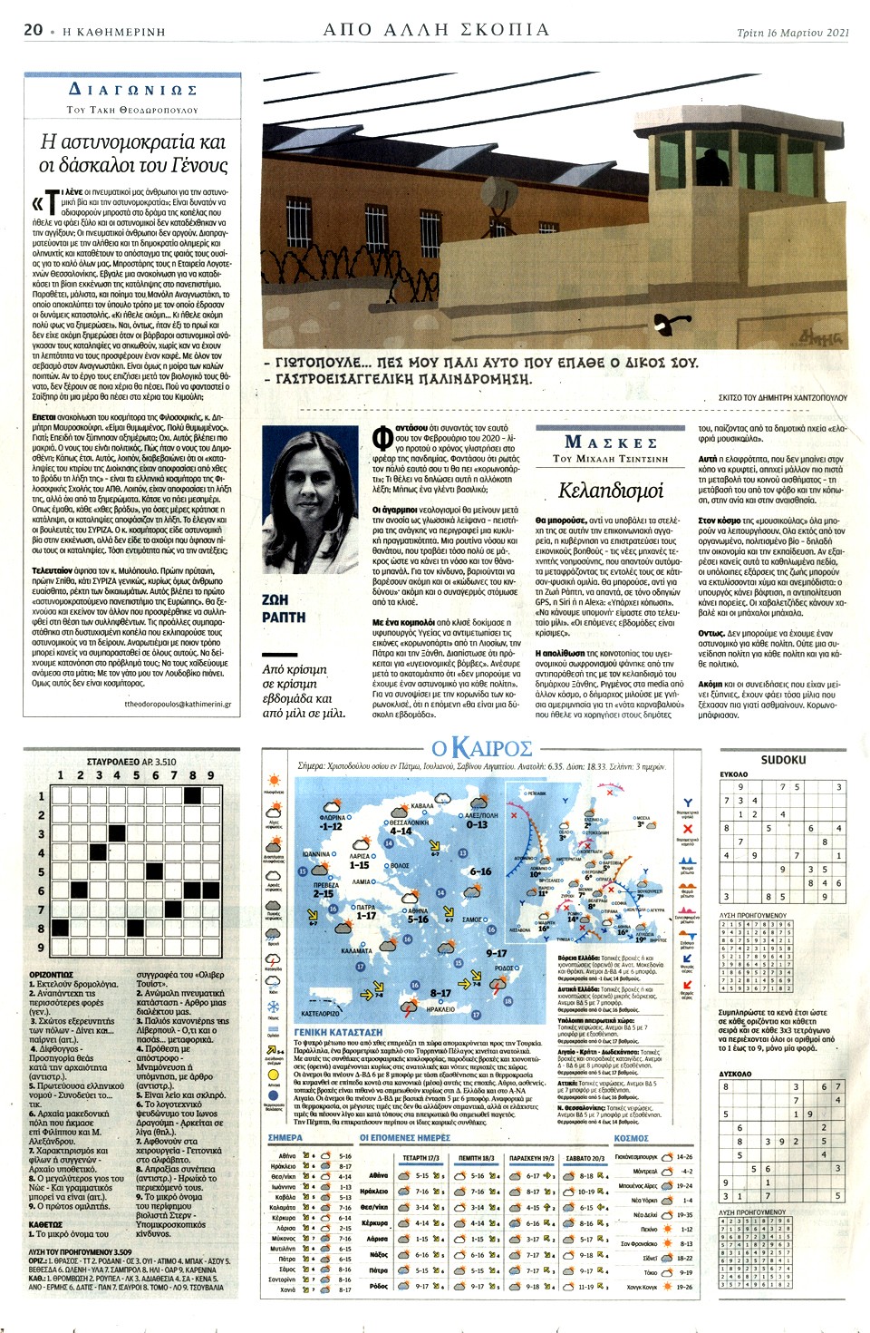 ΚΑΘΗΜΕΡΙΝΗ - 16 Μαρτίου 2021