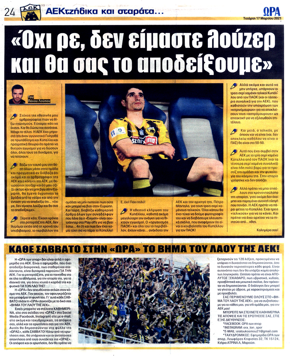 ΑΘΛΗΤΙΚΗ ΩΡΑ ΤΩΝ ΣΠΟΡ - 17 Μαρτίου 2021
