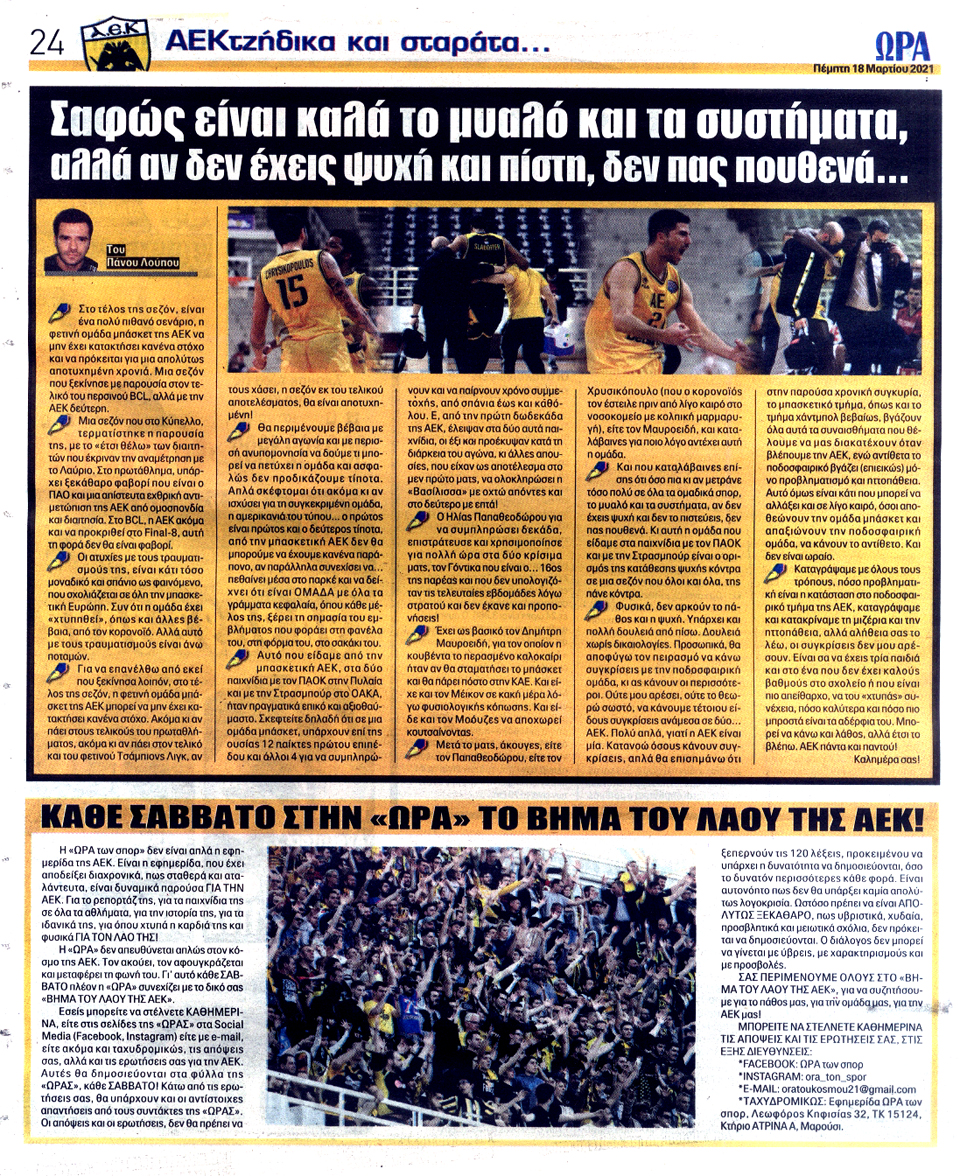 ΑΘΛΗΤΙΚΗ ΩΡΑ ΤΩΝ ΣΠΟΡ - 18 Μαρτίου 2021