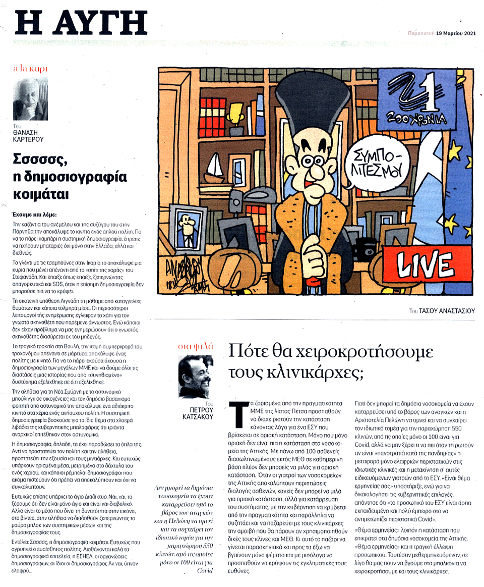 Η ΑΥΓΗ - 19 Μαρτίου 2021