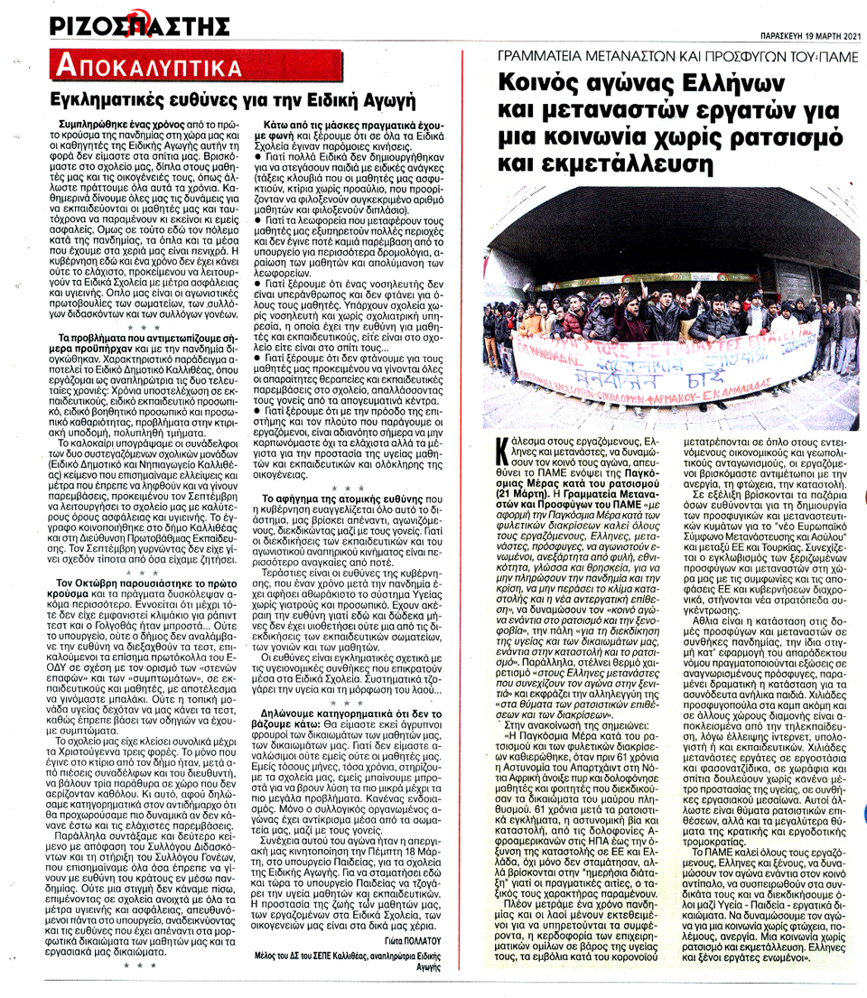 ΡΙΖΟΣΠΑΣΤΗΣ - 19 Μαρτίου 2021