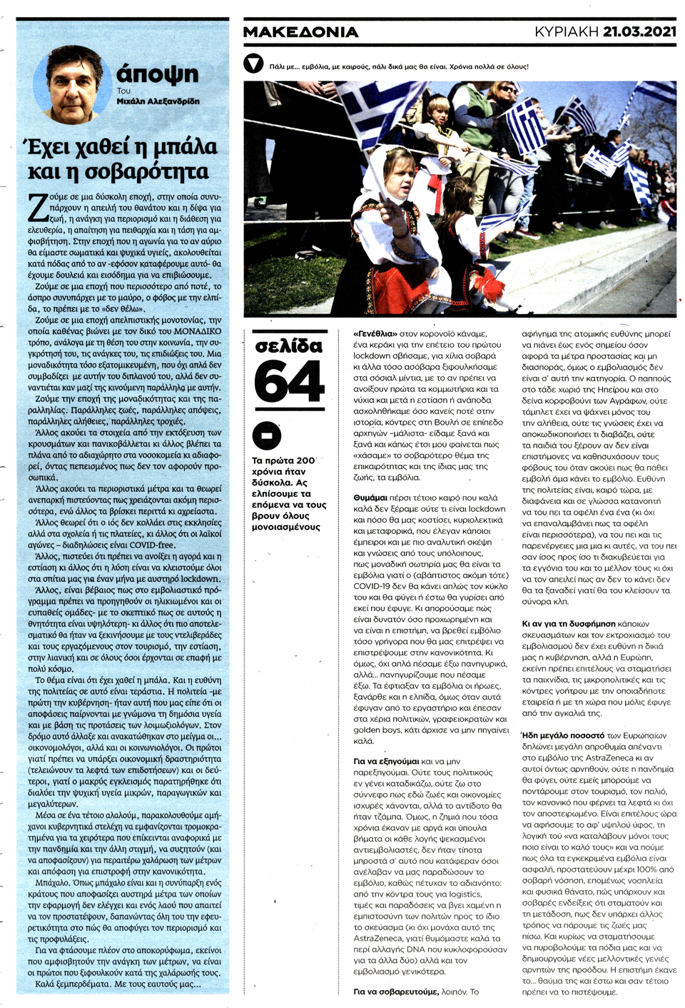 ΜΑΚΕΔΟΝΙΑ ΤΗΣ ΚΥΡΙΑΚΗΣ - 21 Μαρτίου 2021