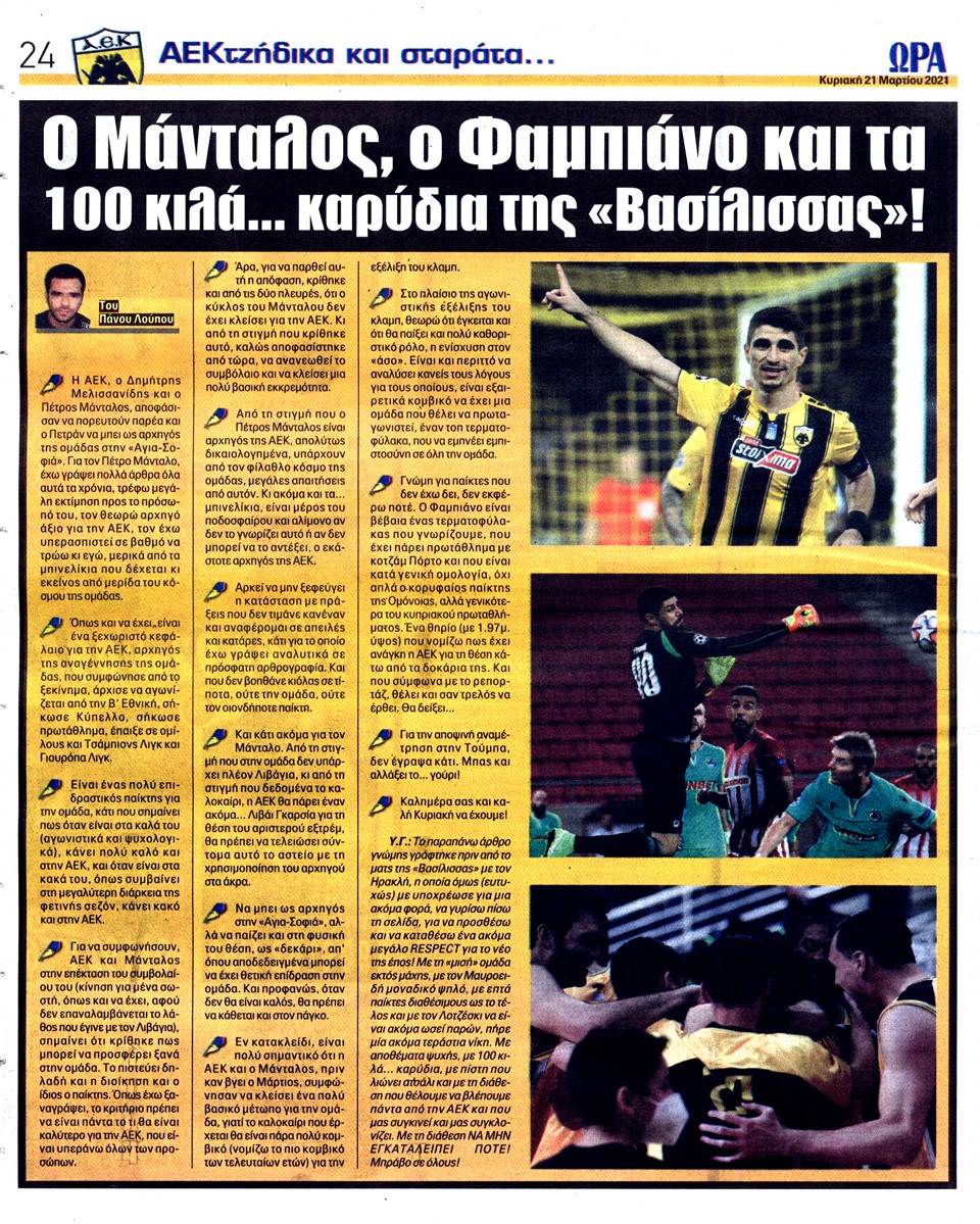 ΑΘΛΗΤΙΚΗ ΩΡΑ ΤΩΝ ΣΠΟΡ - 21 Μαρτίου 2021