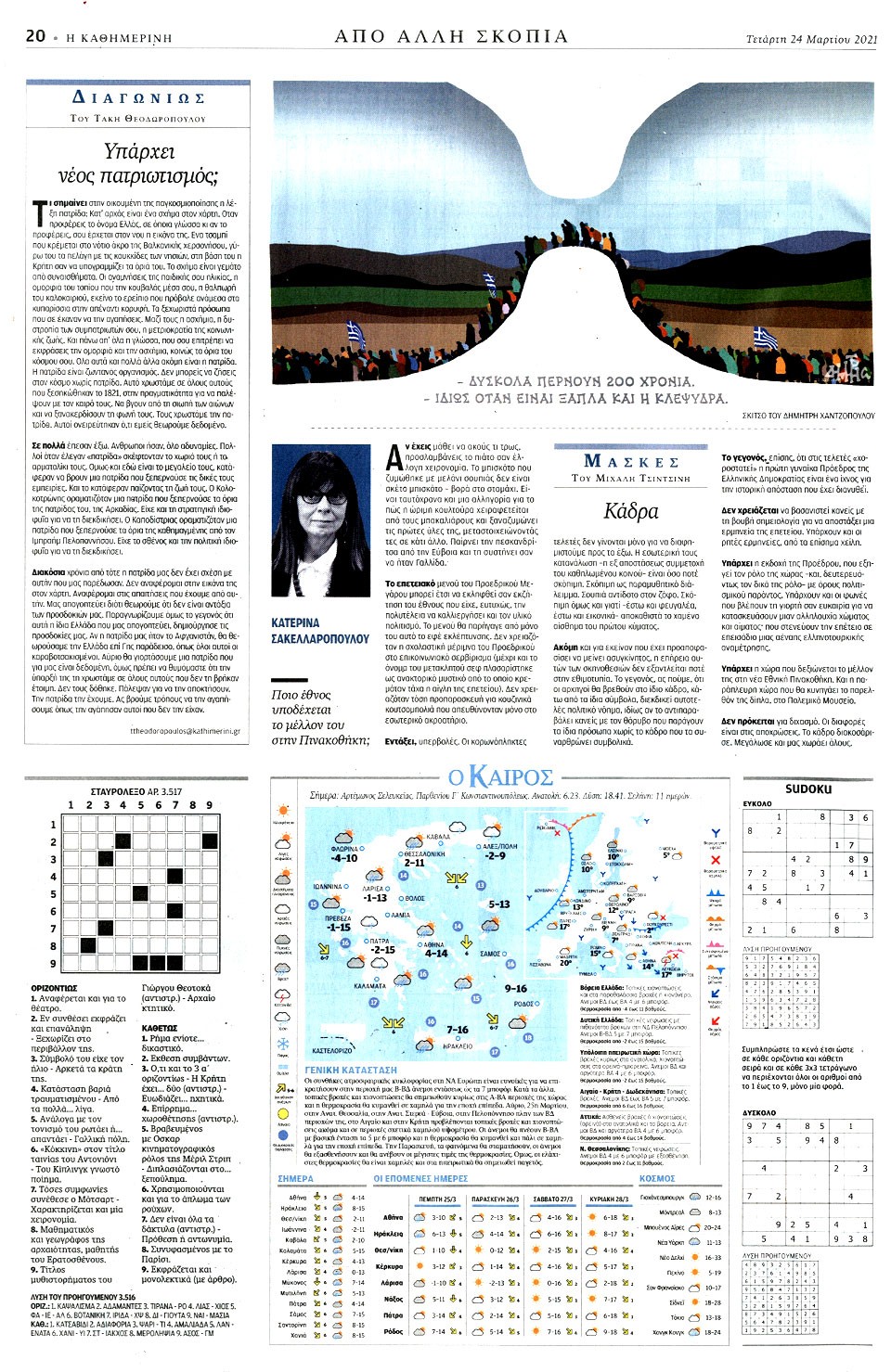 ΚΑΘΗΜΕΡΙΝΗ - 24 Μαρτίου 2021