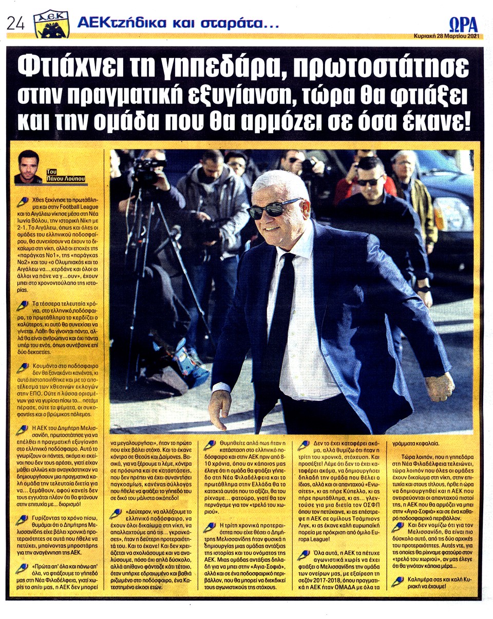 ΑΘΛΗΤΙΚΗ ΩΡΑ ΤΩΝ ΣΠΟΡ - 28 Μαρτίου 2021
