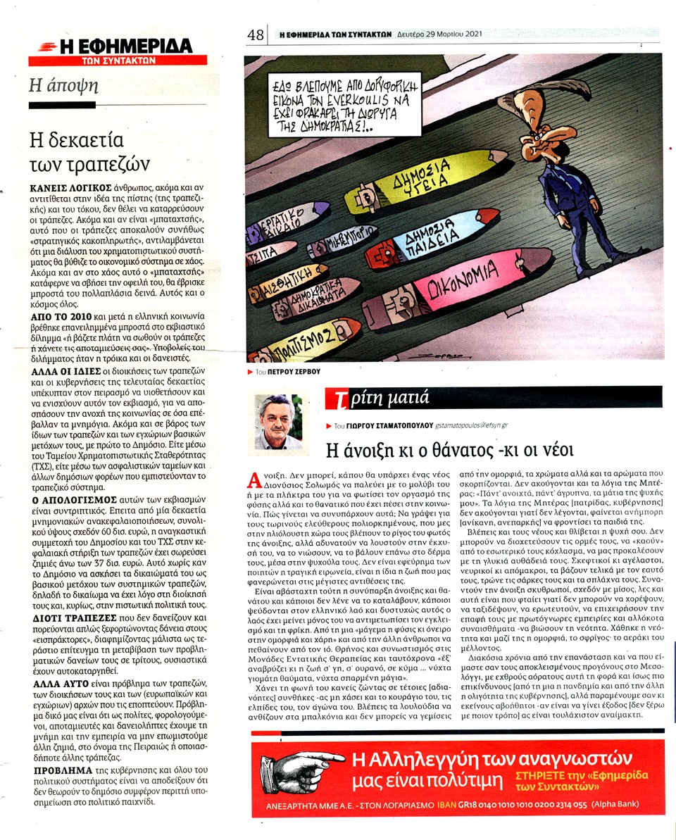 Η ΕΦΗΜΕΡΙΔΑ ΤΩΝ ΣΥΝΤΑΚΤΩΝ - 29 Μαρτίου 2021