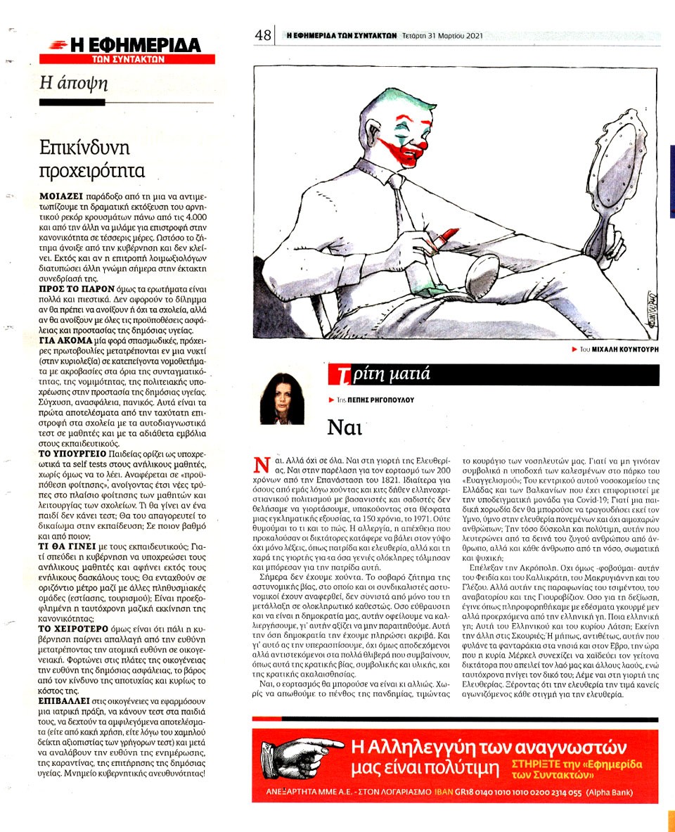 Η ΕΦΗΜΕΡΙΔΑ ΤΩΝ ΣΥΝΤΑΚΤΩΝ - 31 Μαρτίου 2021