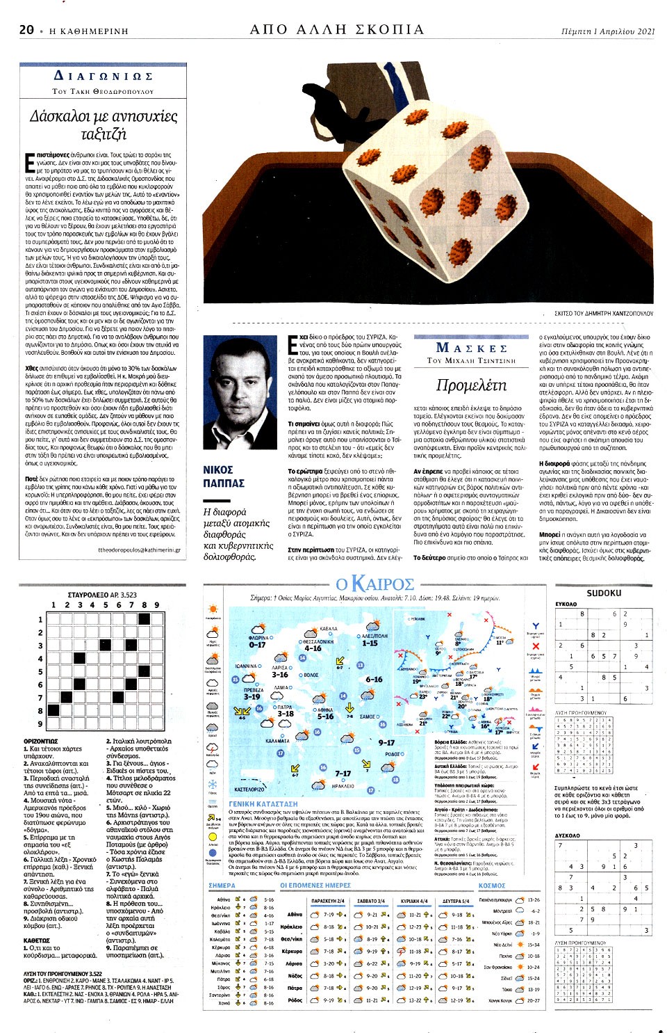 ΚΑΘΗΜΕΡΙΝΗ - 1 Απριλίου 2021