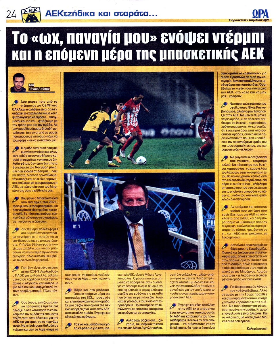 ΑΘΛΗΤΙΚΗ ΩΡΑ ΤΩΝ ΣΠΟΡ - 2 Απριλίου 2021