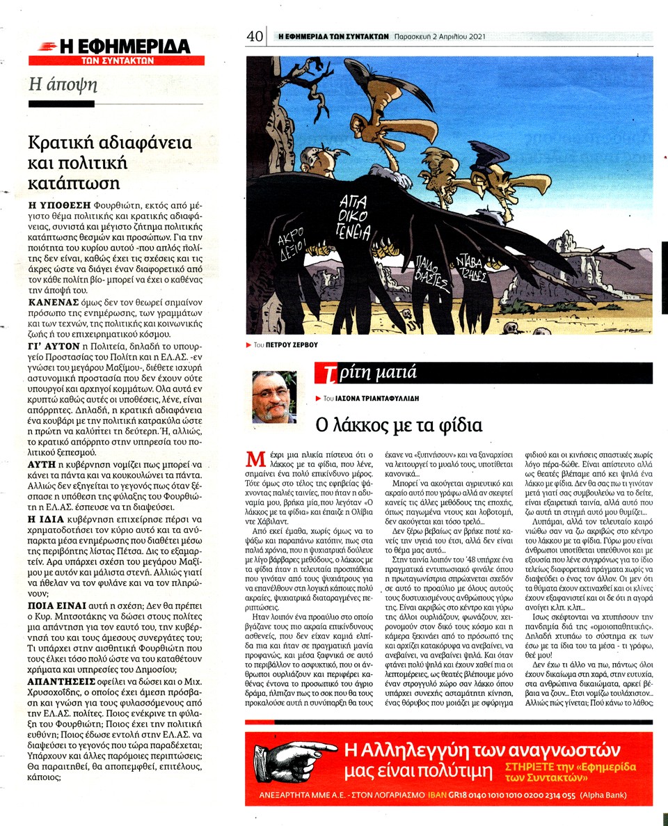 Η ΕΦΗΜΕΡΙΔΑ ΤΩΝ ΣΥΝΤΑΚΤΩΝ - 2 Απριλίου 2021