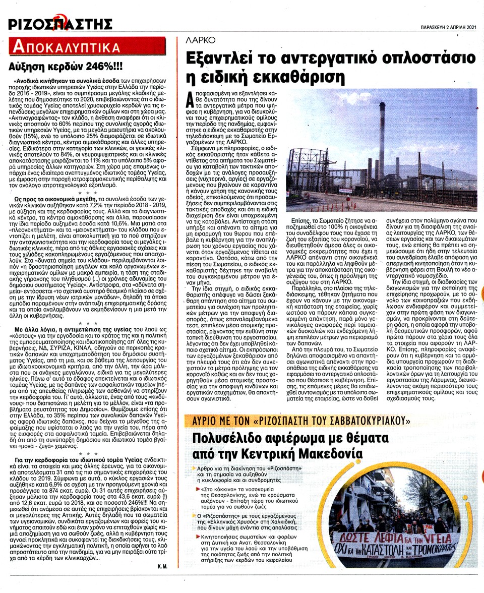 ΡΙΖΟΣΠΑΣΤΗΣ - 2 Απριλίου 2021