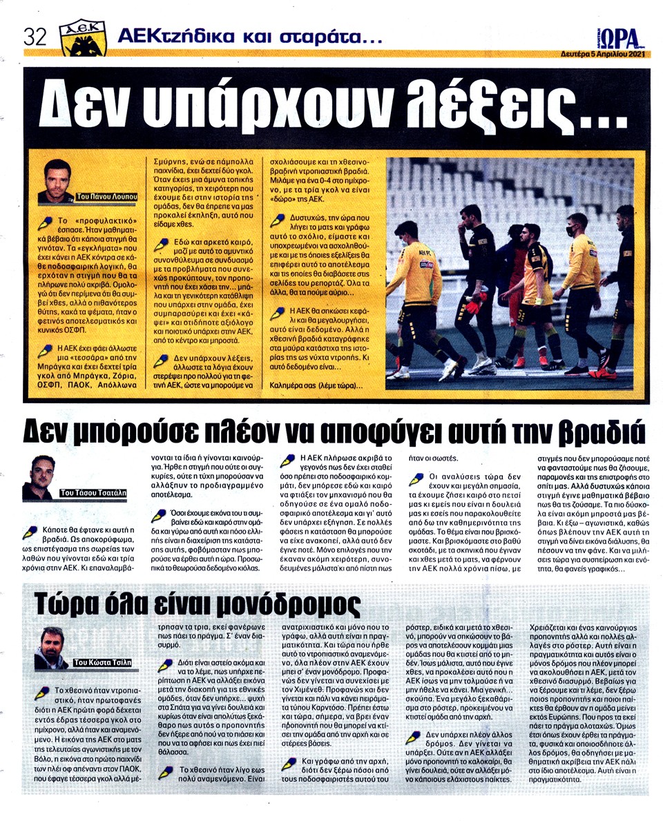 ΑΘΛΗΤΙΚΗ ΩΡΑ ΤΩΝ ΣΠΟΡ - 5 Απριλίου 2021