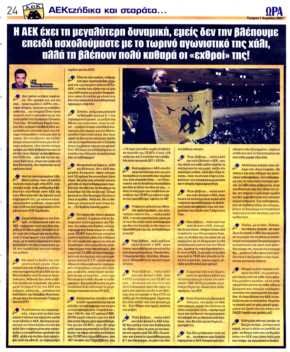 ΑΘΛΗΤΙΚΗ ΩΡΑ ΤΩΝ ΣΠΟΡ - 7 Απριλίου 2021