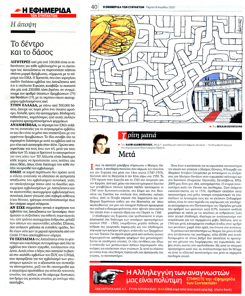 Η ΕΦΗΜΕΡΙΔΑ ΤΩΝ ΣΥΝΤΑΚΤΩΝ - 8 Απριλίου 2021