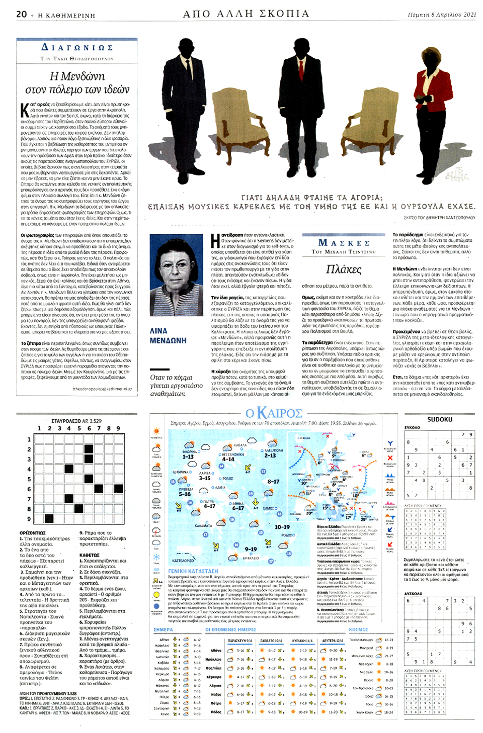 ΚΑΘΗΜΕΡΙΝΗ - 8 Απριλίου 2021